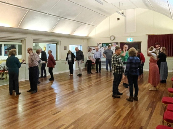Western Partner Dancing is done around the outside of the room, while line dancers dance in a group in the middle. There is often a line dance and a partner dance choreographed to the same music so they can be done at the same time. Mike and his dancing partner, Mel, teach partner dances. These dances originate from a lot of influences, so you may recognise waltz, cha cha, rumba, latin steps and beats. They are less formal than traditional ballroom, however, and our members have a lot of fun. See below for film clip and photos which help you build an idea of what it is like.