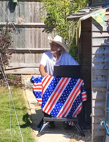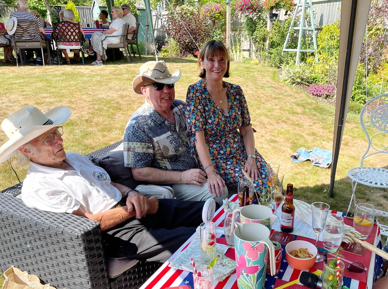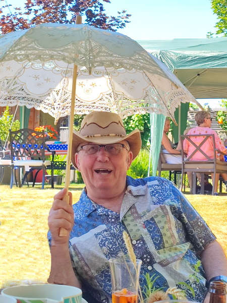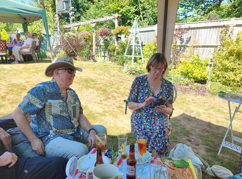 Although it was very very hot, we danced on the patio in the shade in short bursts and she shielded us well with marquees and gazebos. Mike even resorted to sitting in the garage to do the music in order to see the screen as the light was so bright.
