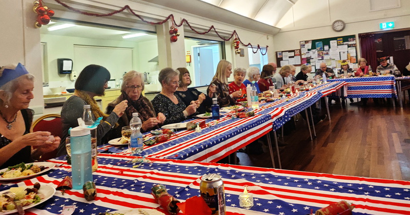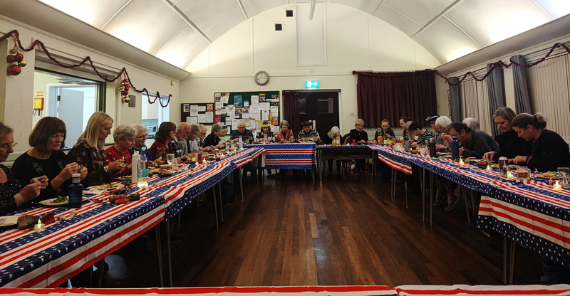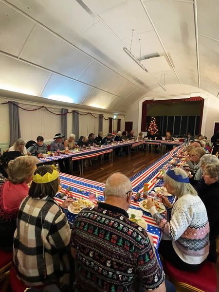 Everyone rallied round to help throughout the evening. Special thanks to Emma who helped in the afternoon to put up Christmas decorations, Jan and Pete who arrived early to put chairs around, the team who set up the tables and the volunteers in the kitchen who washed and cleared up after the meal. It is brilliant teamwork.