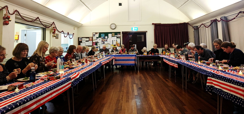 Our Christmas supper evening at Laverstock Village Hall saw 41 of our members attending, with a few, who were due to come, away with colds and viruses at the last minute. We had the usual Christmas meal of turkey, ham, quiche, salads, cheese and biscuits and desserts. Frank from the Laverstock Hall committee attended to receive our charity donation - see charity notes page.