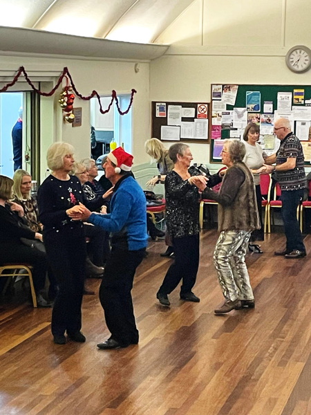We then decided from February 2025 to use Laverstock and Ford Sports Club which has a private room at the back. Sadly we have now moved from the Sports Club as several people have found the smaller dance space and the floor a problem. The staff have been very welcoming to us and some have really enjoyed the atmosphere there. See photos of our dancing at the Sports Club below ...